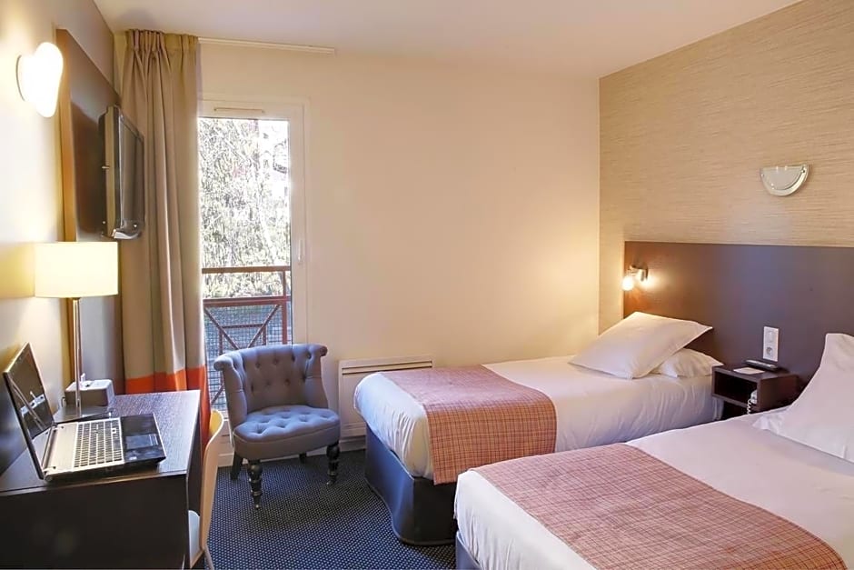 Chambre au design soigné, spacieuse et bien agencée pour vos séjours de loisir ou d'affaires dans noter belle ville capitale des Hautes Alpes. Deux lits simples, salle de bain privative avec baignoire et toilettes séparées pour un confort optimal! Un équipement moderne (coffre fort, plateau de courtoisie, TV écran plat, Wifi fiber...) dans un établissement convivial et charmant où vous vous sentirez comme chez vous. Un lit bébé peut être ajouté pour les jeunes familles. Animaux bienvenus. Pas de climatisation, mize à disposition d'un ventilateur.